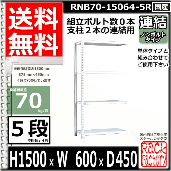 スチールラック 幅60×奥行45×高さ150cm 5段 耐荷重70/段 連結用(支柱2本) 幅60×D45×H150cm ボルト0本で組立やすい 中量棚 業務用 スチール棚 業務用 収納棚 整理棚 ラック