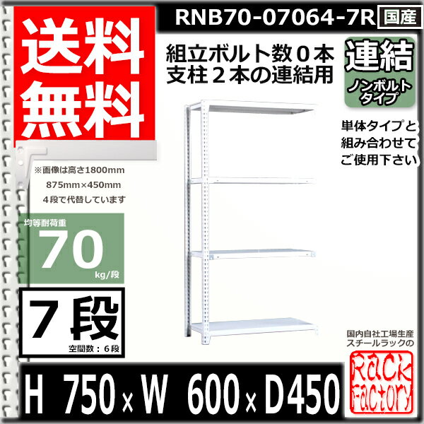 スチールラック 幅60×奥行45×高さ75cm 7段 耐荷重70/段 連結用(支柱2本) 幅60×D45×H75cm ボルト0本で組立やすい 中量棚 業務用 スチール棚 業務用 収納棚 整理棚 ラック