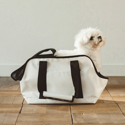 ・スクエアトートターポリンの各サイズはこちらから 【S・M・L・LL】 カラー ブラック・ホワイト サイズ 幅×高さ×奥行き 適応体重 重量 本体価格 S 35cm×24cm×17cm 〜3Kg 約700g 9,000円 M 40cm×29cm×20cm 〜6Kg 約850g 10,000円 L 45cm×33cm×23cm 〜9Kg 約1050g 11,000円 LL 53cm×35cm×26cm 〜12Kg 約1400g 13,000円 素材 表地:ポリエステル100%、メッシュ部分:ナイロン100% 製造国 日本製 備考 【付属品】 ●飛び出し防止リード1本つき ●ストッパー機能付きのファスナー採用! ●こちらの鞄はワンちゃんが横から顔を出しやすいように、底面のサイズより中段サイズ(側面メッシュ切替部)が大きくデザインされているため、ほかの鞄に比べて大きく感じる場合がございます。