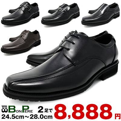 ビジネスシューズ メンズ 2足セット 4E ( EEEE ) 幅広 スクエアトゥ 紐 モンク ビット ローファー スリッポン ブラック ブラウン 黒 茶 ブランド BonPere ボンペール 紳士靴 靴 革靴 福袋 【 あす楽 】